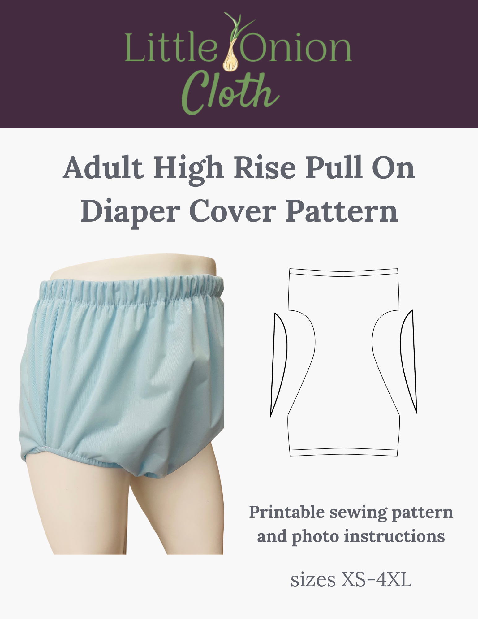 The Adult High Rise Pull On Diaper Cover Pattern is perfect if you need a full coverage cover, especially for nighttime use.
